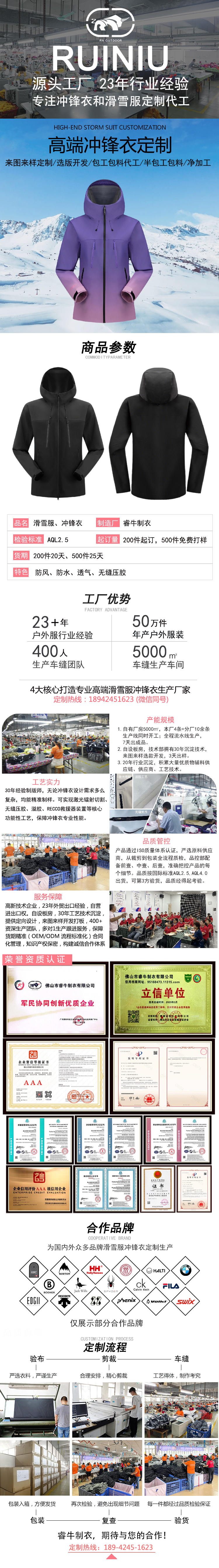 持續23年專注沖鋒衣、滑雪服定制加工廠家