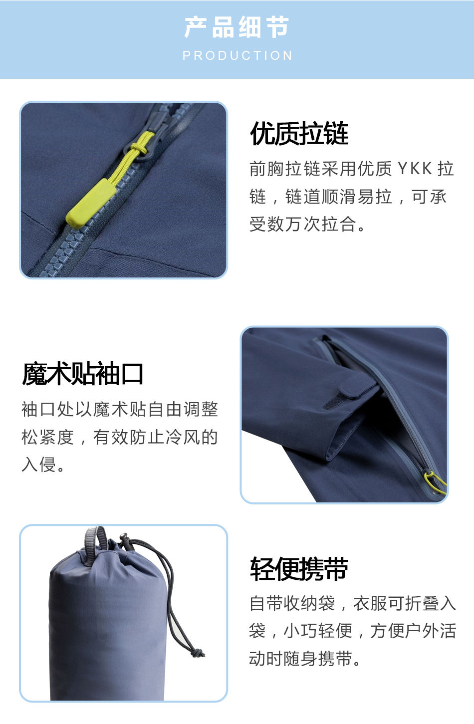輕便攜帶:自帶收納袋,衣服可折疊入袋,小巧輕便,方便戶外活動時隨身攜帶。
