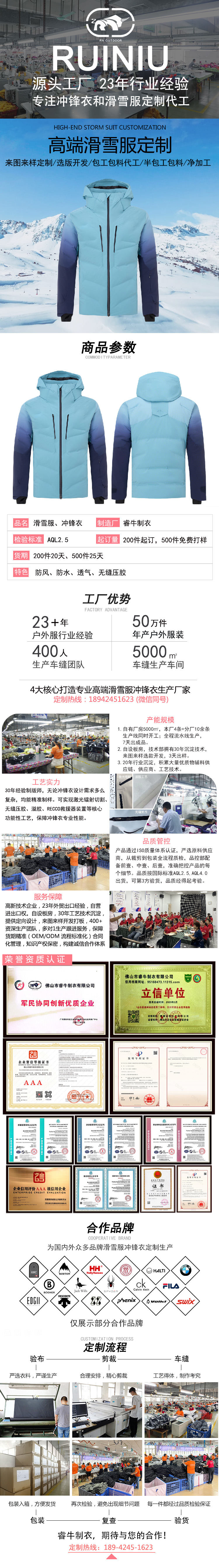防水透濕專業(yè)雙板滑雪服定制代工